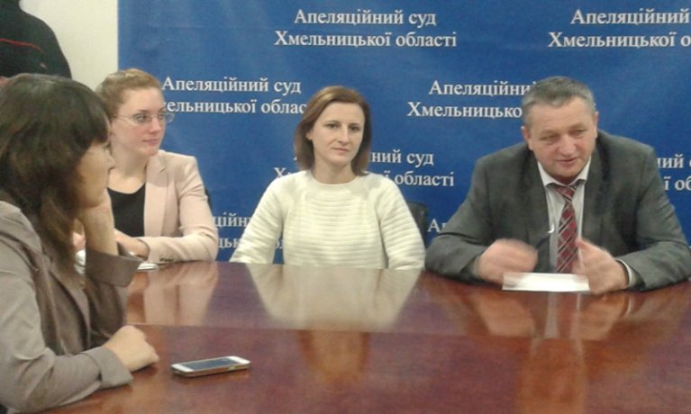 Голова Апеляційного суду Хмельницької області Анатолій Марцинкевич, заступник керівника апарату Марина Тимощук та референт прес-служби суду Юлія Салдан зустрілися із вчителями правознавства шкіл Хмельницького та з методистом Департаменту освіти і науки Хмельницької міської ради Олександром Дейнегою, аби разом визначитися з методикою проведення інтерактивних навчань із шкільними класами, які вивчають правознавство.