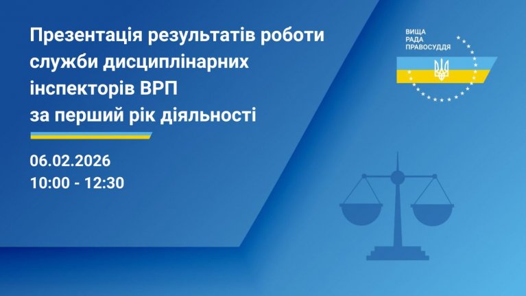 У п’ятницю, 6 лютого 2026 року, з 10:00 до 12:30 у Вищій раді правосуддя відбудеться презентація результатів роботи служби дисциплінарних інспекторів Вищої ради правосуддя за перший рік діяльності.